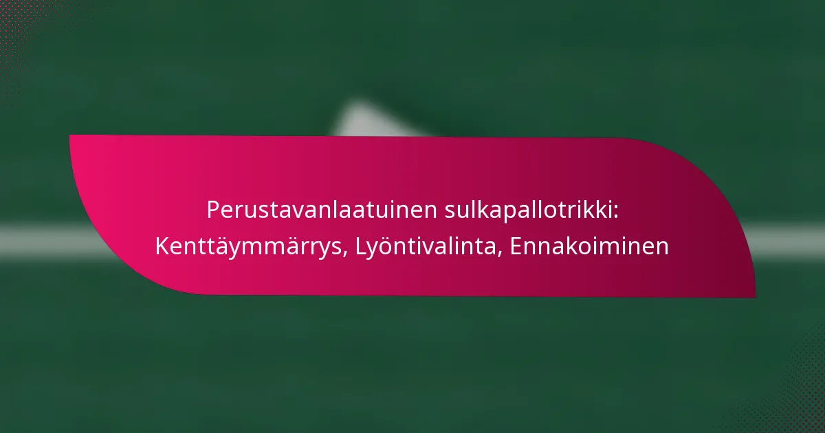Badmintonissa kenttäymmärryksen, lyöntivalintojen ja ennakoimisen hallinta on olennaista pelin kehittämiseksi. Kenttäymmärrys auttaa pelaajia ymmärtämään omaa ja vastustajan sijaintia, mikä on ratkaisevaa strategisten päätösten tekemisessä. Parantamalla lyöntivalintoja ja kehittämällä ennakoimiskykyjä pelaajat voivat reagoida nopeasti ja tehokkaasti, mikä johtaa parempaan suoritukseen kentällä.